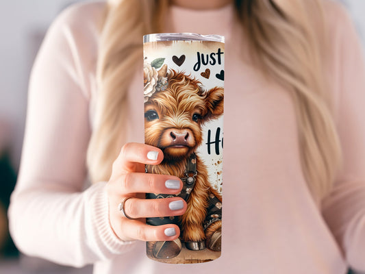 Cute Highland Cow Tumbler, Just a Girl Who Loves Highland Cows, Adorable Cow Lover Tumbler, Floral Cow Art Tumbler Gift (Copy)