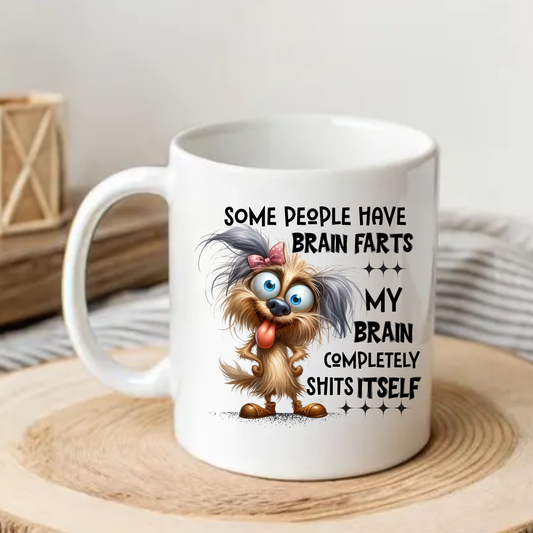Funny Dog Mug – “Brain Farts” Quote – 11 oz Ceramic Coffee Cup
