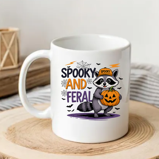 Spooky Raccoon Mug, Halloween Ceramic Mug, Feral Mug, Animal Lover Gift, 11oz Mug, Raccoon Pumpkin Mug, Autumn Mug, Fall Mug, Cute Mug