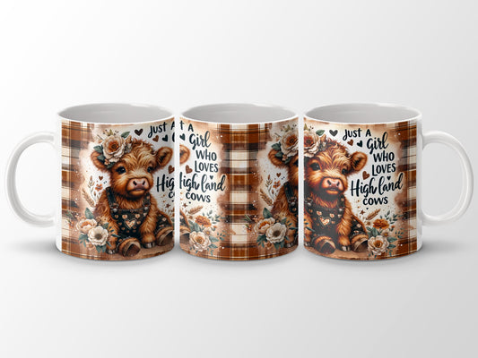 Highland Cow Mug Just a Girl Who Loves Highland Cows Cute Farm Animal Lover Gift Highland Cow Art Coffee Tea Mug