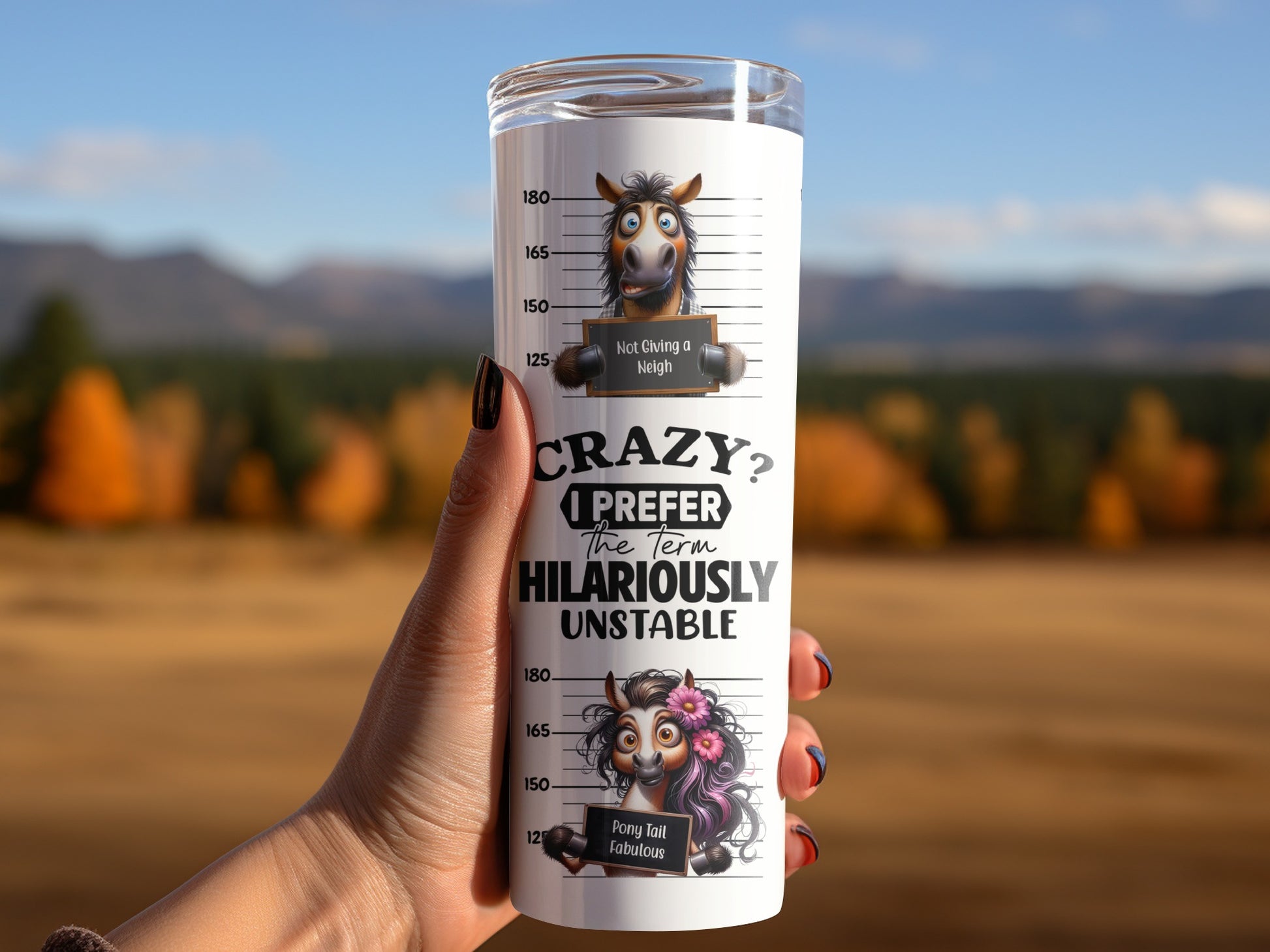 Funny Horse Mugshot 20oz Tumbler, Crazy Hilariously Unstable, Horsepower Tumbler, Barn Hair Tumbler, Animal Pun Tumbler, Gift for Horse